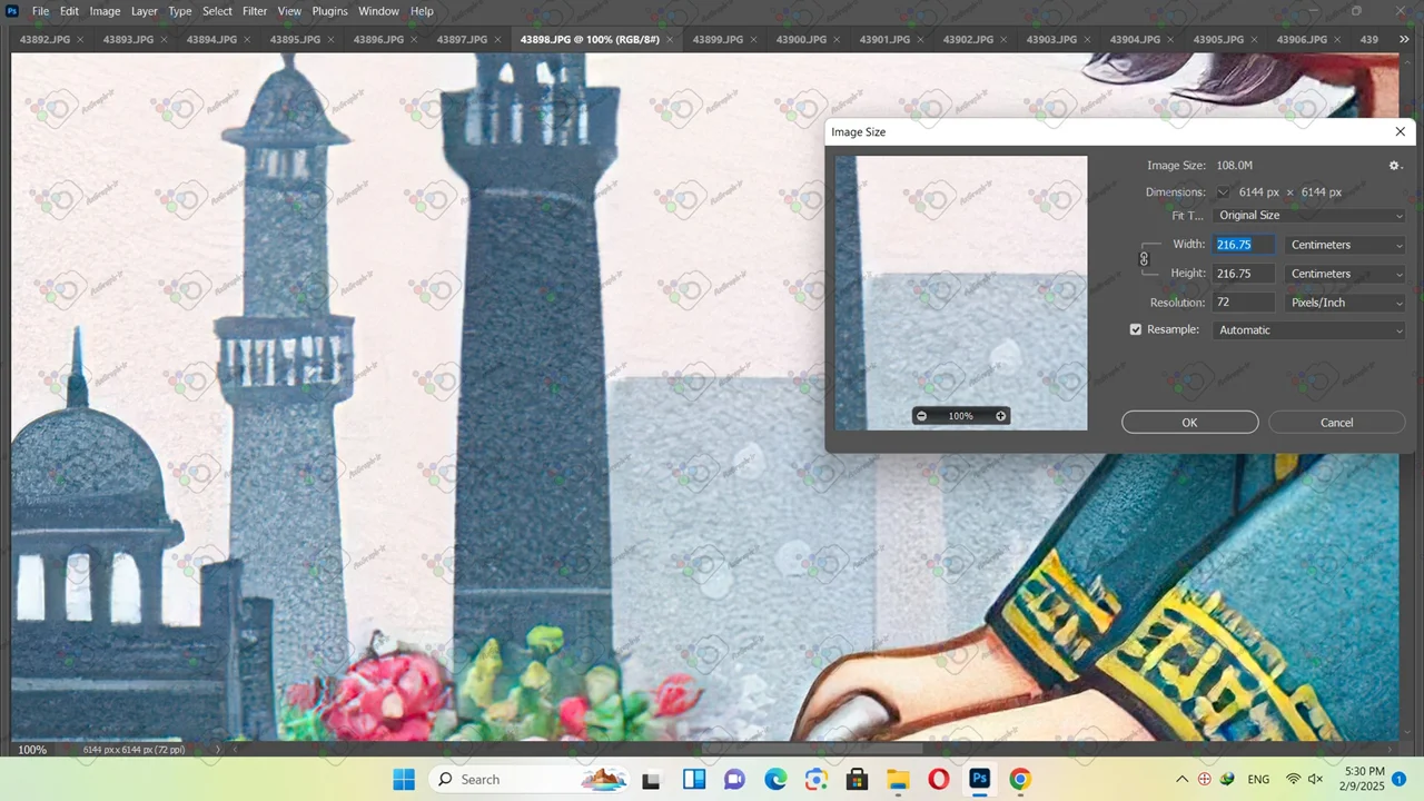 • ابعاد فایل(سانتیمتر و پیکسل) و رزولوشن عکس در تصویر دوم قابل مشاهده میباشد.تصویر بزرگتر نشان دهنده کیفیت تصویر با ابعاد استاندارد برای چاپ میباشد.تصویر کوچکتر نشان دهنده کیفیت عکس در حالت بزرگنمایی 100 در 100 میباشد.