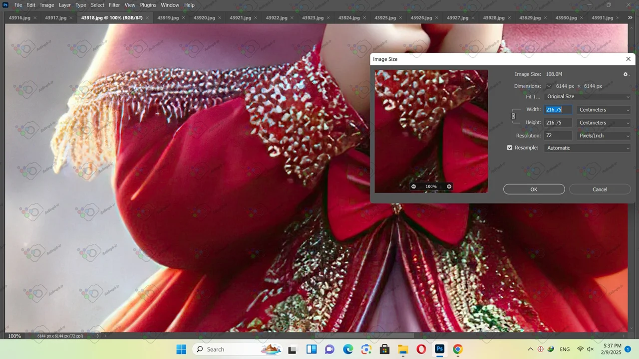 • ابعاد فایل(سانتیمتر و پیکسل) و رزولوشن عکس در تصویر دوم قابل مشاهده میباشد.تصویر بزرگتر نشان دهنده کیفیت تصویر با ابعاد استاندارد برای چاپ میباشد.تصویر کوچکتر نشان دهنده کیفیت عکس در حالت بزرگنمایی 100 در 100 میباشد.