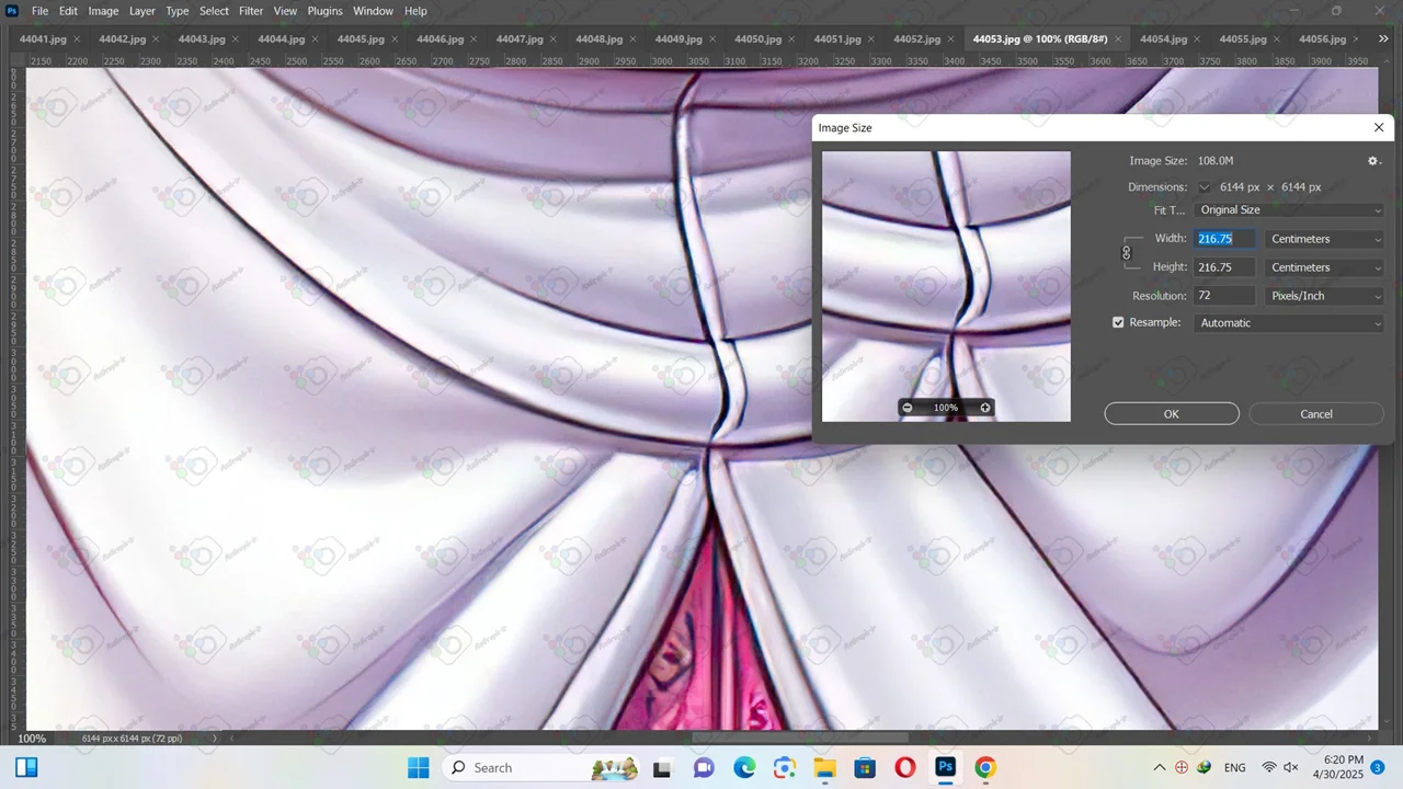 • ابعاد فایل(سانتیمتر و پیکسل) و رزولوشن عکس در تصویر دوم قابل مشاهده میباشد.تصویر بزرگتر نشان دهنده کیفیت تصویر با ابعاد استاندارد برای چاپ میباشد.تصویر کوچکتر نشان دهنده کیفیت عکس در حالت بزرگنمایی 100 در 100 میباشد.