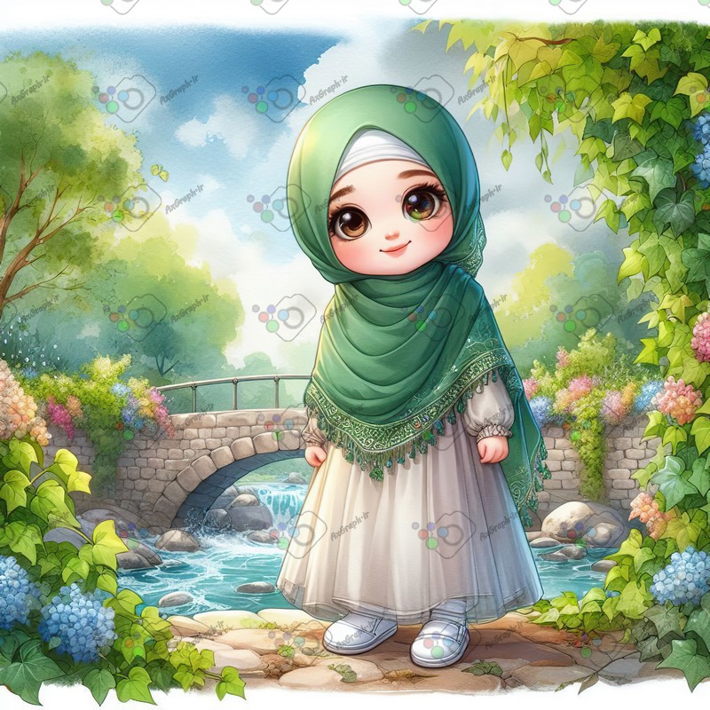 بک گراند کودکانه دختر کوچولوی ناز با حجاب در باغ-کد 44310(ویژه عکس گراف)