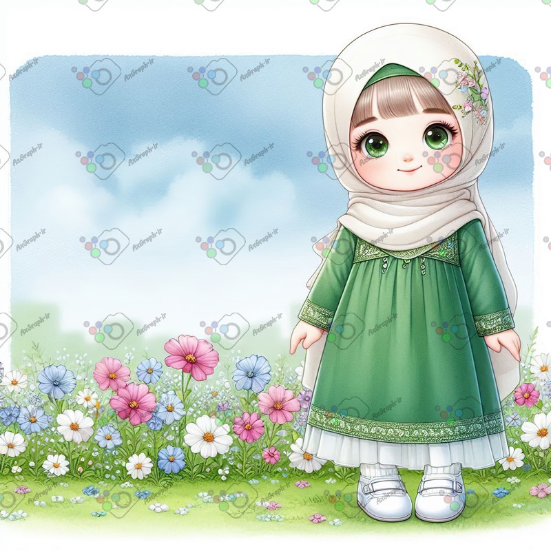 بک گراند کودکانه دختر کوچولوی ناز با حجاب در باغ گل-کد 44321(ویژه عکس گراف)