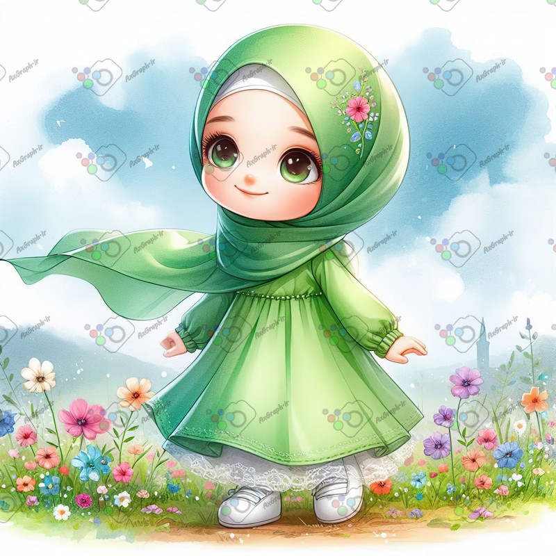 بک گراند کودکانه دختر کوچولوی ناز با حجاب در حال قدم زدن میان گلها-کد 44322(ویژه عکس گراف)