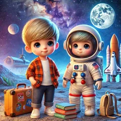 بک گراند کودکانه پسر کوچولوی دوست داشتنی و دوست فضانوردش ایستاده در کهکشان-کد 44244(ویژه عکس گراف)