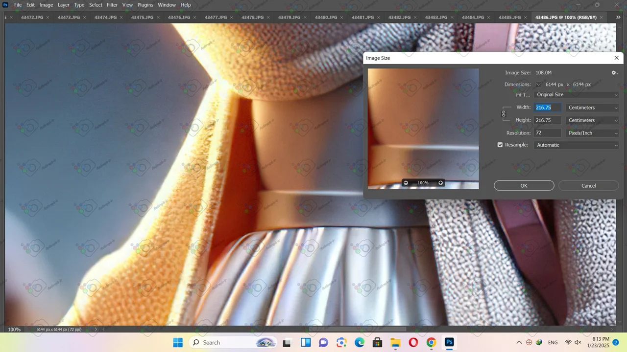 • ابعاد فایل(سانتیمتر و پیکسل) و رزولوشن عکس در تصویر دوم قابل مشاهده میباشد.تصویر بزرگتر نشان دهنده کیفیت تصویر با ابعاد استاندارد برای چاپ میباشد.تصویر کوچکتر نشان دهنده کیفیت عکس در حالت بزرگنمایی 100 در 100 میباشد.