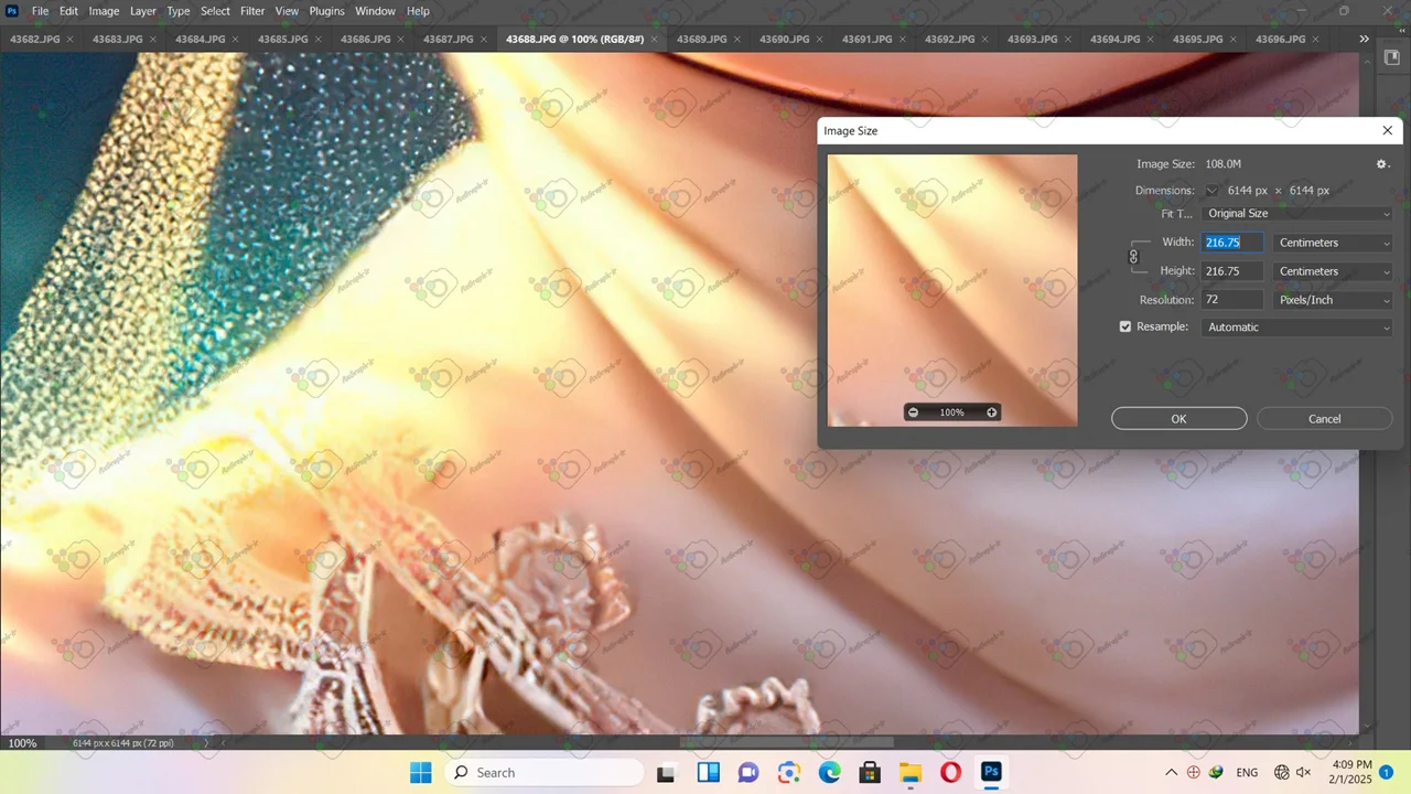 • ابعاد فایل(سانتیمتر و پیکسل) و رزولوشن عکس در تصویر دوم قابل مشاهده میباشد.تصویر بزرگتر نشان دهنده کیفیت تصویر با ابعاد استاندارد برای چاپ میباشد.تصویر کوچکتر نشان دهنده کیفیت عکس در حالت بزرگنمایی 100 در 100 میباشد.